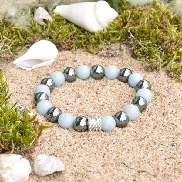 Angelit otacza spokojem, przywraca równowagę, wypełnia serce miłością i światłem oraz daje poczucie pełni istnienia, pomaga uwolnić lęki i brak pewności siebie, wspiera proces odrodzenia, wzmacnia więź ze Światem Duchowym, pomaga podczas medytacji i podróży astralnych.