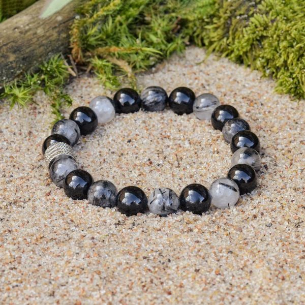 Bransoletka z Kwarcu Turmalinowego i Czarnego Turmalinu (Szerl)
