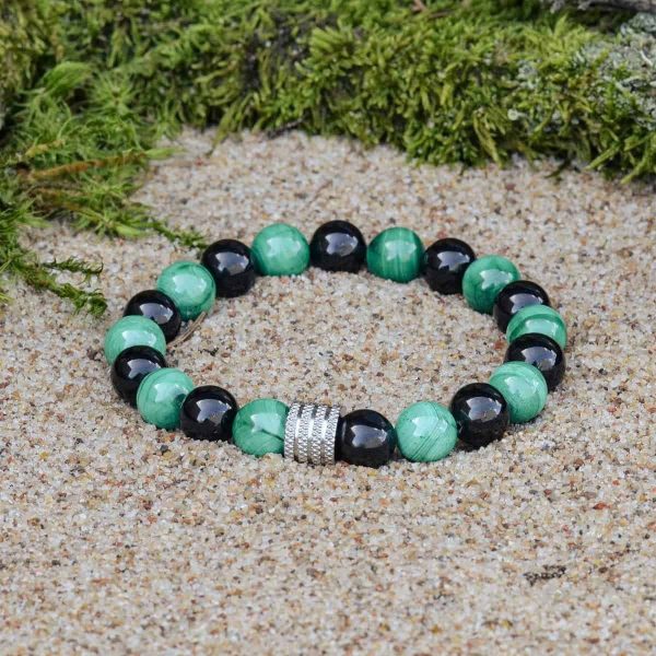 Bransoletka z Malachitem i Czarnym Obsydianem