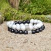 Howlit i czarny agat tworzą perfekcyjne połączenie, które jest idealne do leczenia oraz uzupełnia tę piękną bransoletkę Yin i Yang.